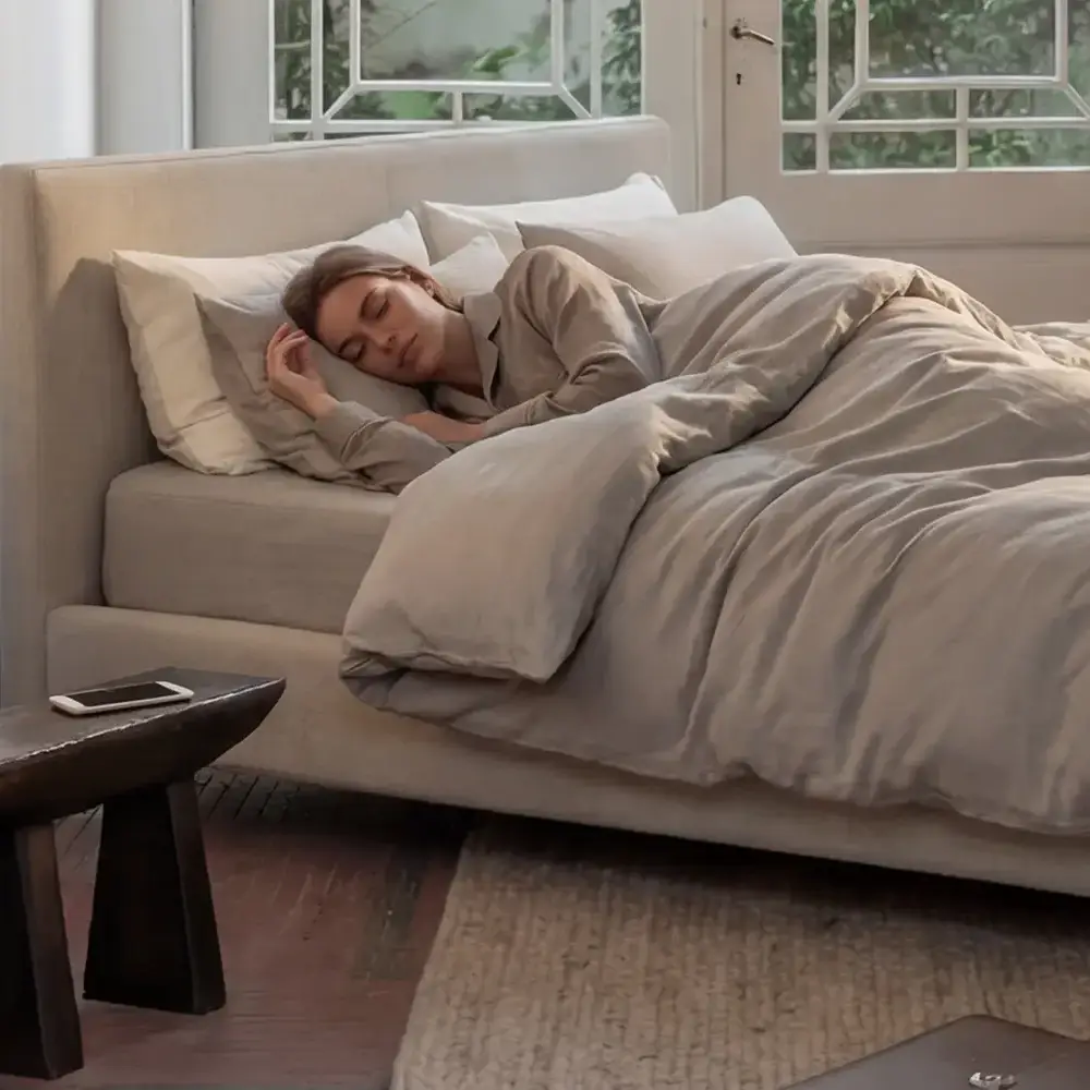 Na een volle dag wil je niet “nog iets”. Je wilt minder. Minder input, minder gedoe, minder trekken en schuiven. Het bed wordt een grens: deur dicht, licht zachter, telefoon weg, adem omlaag.